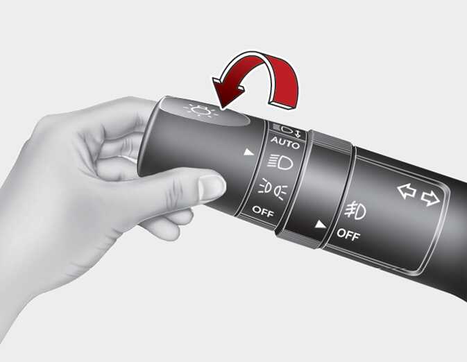 미등 위치의 조명과 전조등이 켜집니다.