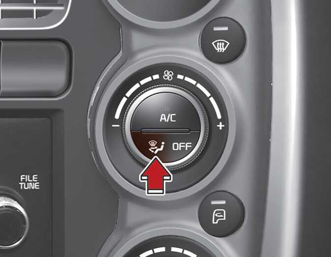 버튼 내 표시등이 꺼지도록 실내 순환 버튼을 누르십시오. 외부 공기가 들어옵니다. 실내 환기 시 사용하십시오.
