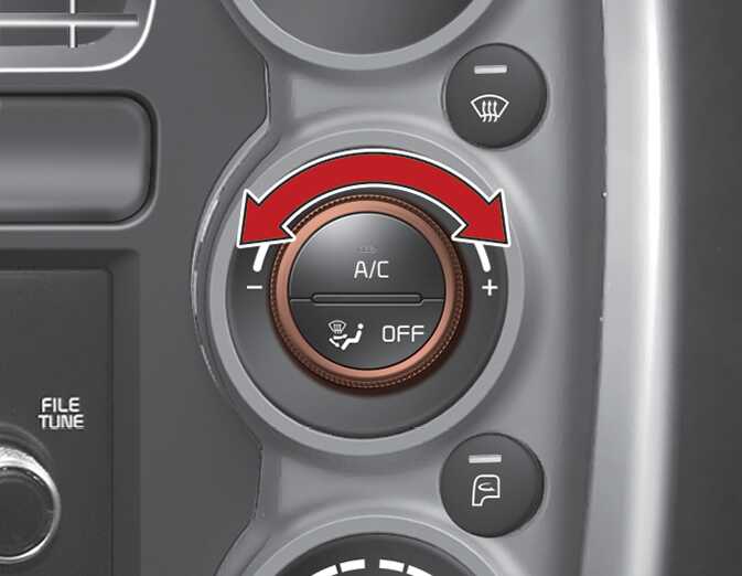 풍량 조절 노브를 돌려 원하는 풍량을 설정하십시오. 앞유리 서리 제거 버튼을 한 번 더 누르면 버튼 내 표시등이 꺼지고 각 버튼이 앞유리 서리 제거를 선택하기 이전 설정 상태로 되돌아 갑니다.
