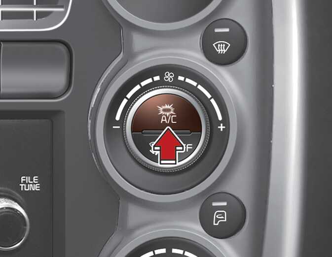 시동을 걸고 에어컨(A/C) 버튼을 눌러 에어컨을 작동하십시오(버튼 내 표시등 켜짐).