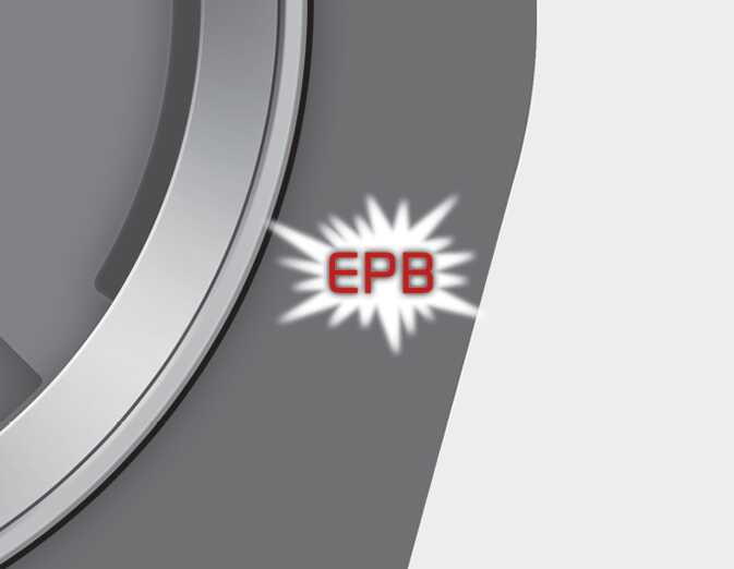 전자식 파킹 브레이크(EPB) 고장 발생 또는 작동에 연관된 차량 고장 발생 시 클러스터에 「EPB」 경고등이 나타납니다. 가까운 자사 직영 서비스센터나 서비스협력사에 점검을 의뢰하십시오. 차체자세 제어 장치(ESC) 고장으로 인하여 차체자세 제어 장치(ESC) 경고등이 켜질 경우 「EPB」 경고등이 함께 켜질 수 있습니다.