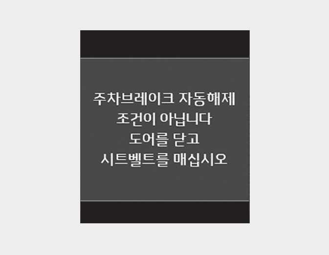 운전자가 안전벨트 미착용 상태이거나 운전석 도어가 열린 상태에서 시스템 작동 조건 불만족으로 자동 해제가 되지 않으면 LCD 표시창에 경고 문구가 나타나고 경고음이 1회 울립니다.