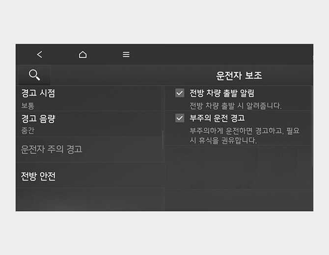 운전자 주의 경고 설정