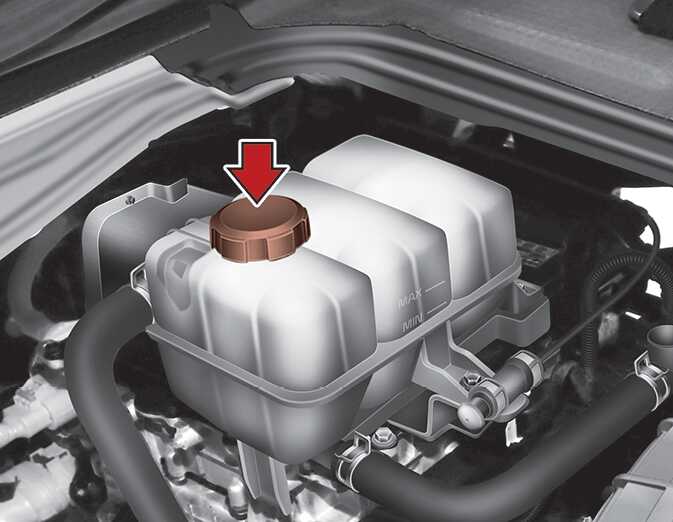 냉각수의 양은 매일 점검하여 필요시 보충하십시오. 냉각수의 양은 냉각수 보조 탱크 옆면에 표시되어 있는 최대선(MAX)과 최소선(MIN) 사이에 있어야 합니다.