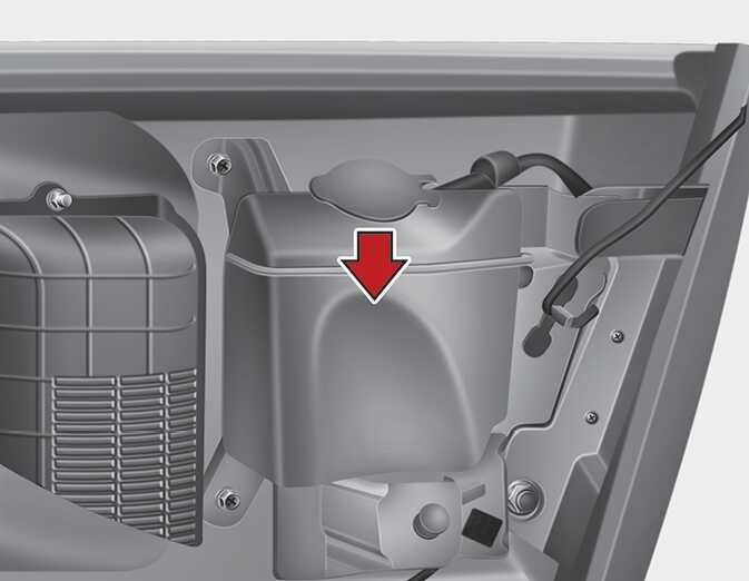 냉각수 또는 부동액을 와셔액으로 사용하지 마십시오. 냉각수 또는 부동액이 유리에 뿌려지면 시야를 가려 위험하고 차체와 도장에 손상을 줍니다.