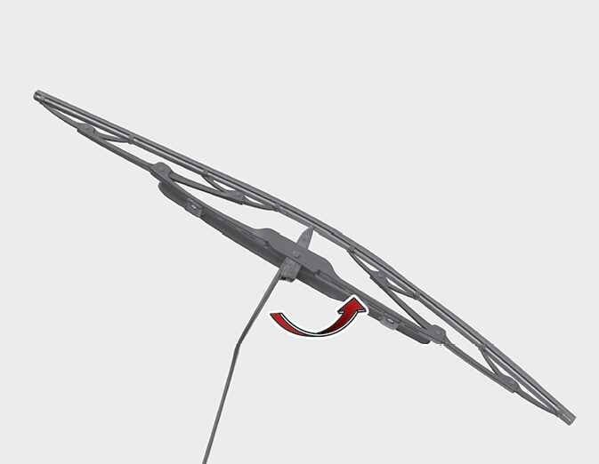 와이퍼 암을 세운 다음 와이퍼 암과 와이퍼 블레이드가 T자가 되도록 하십시오.