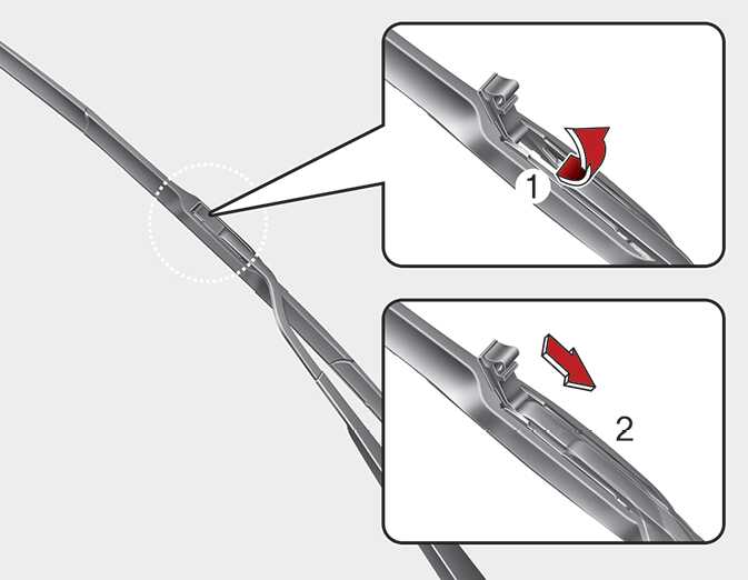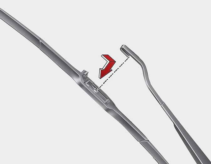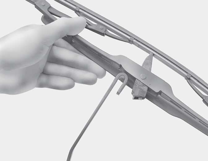 와이퍼 블레이드가 분리된 상태에서 와이퍼 암이 유리창에 닿지 않도록 주의하십시오. 유리창이 파손될 수 있습니다.