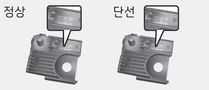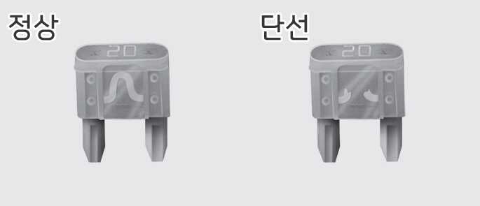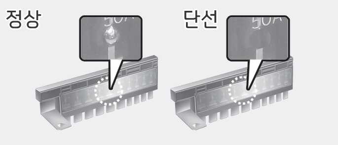 퓨즈 교체 후에도 계속 퓨즈가 단선되면 전기 장치의 다른 과부하가 있으니 자사 직영 서비스센터 또는 서비스협력사에 정비를 의뢰하십시오.