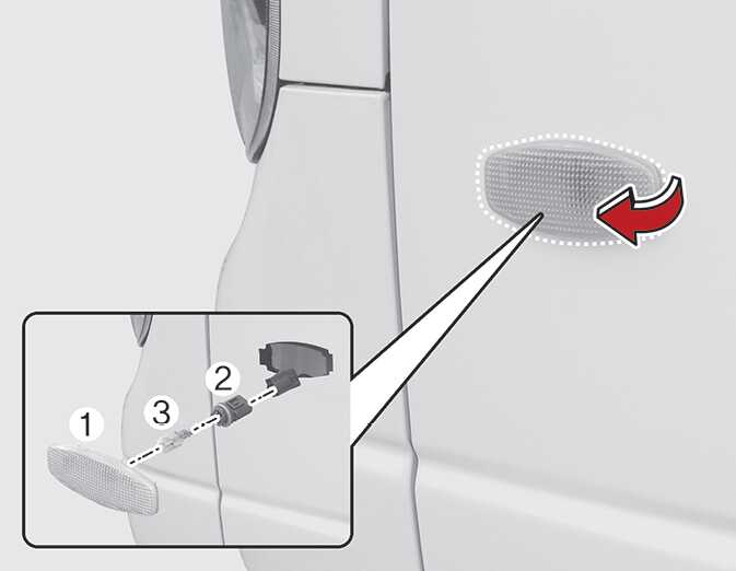 LED 타입의 옆 방향지시등(1)이 켜지지 않을 경우에는 가까운 자사 직영 서비스센터 또는 서비스협력사에 의뢰하십시오.