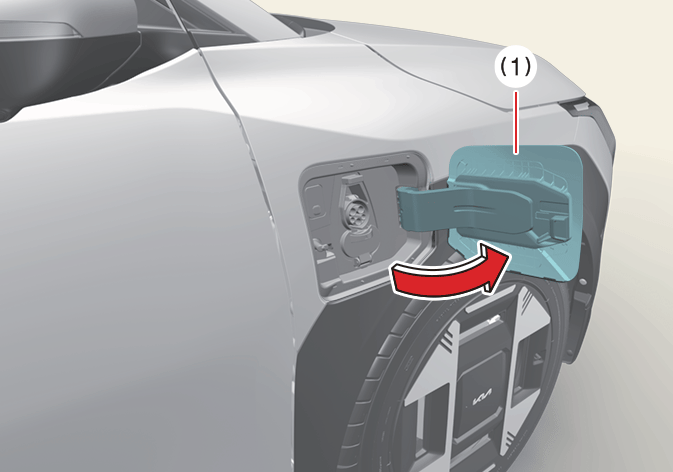 Pull the charging door (1) fully open towards the front of the vehicle.