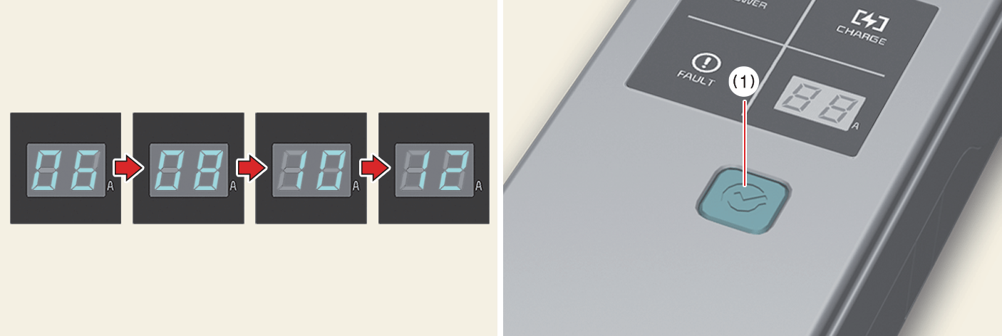 Press the button (1) on the control box for 2 to 8 seconds to adjust the charge level. (Refer to charging cable type and example for setting the charge level.)
