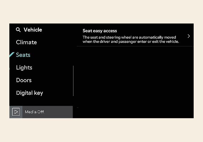 Seat Easy Access: The seat and steering wheel are automatically moved when the driver enters of exits the vehicle.