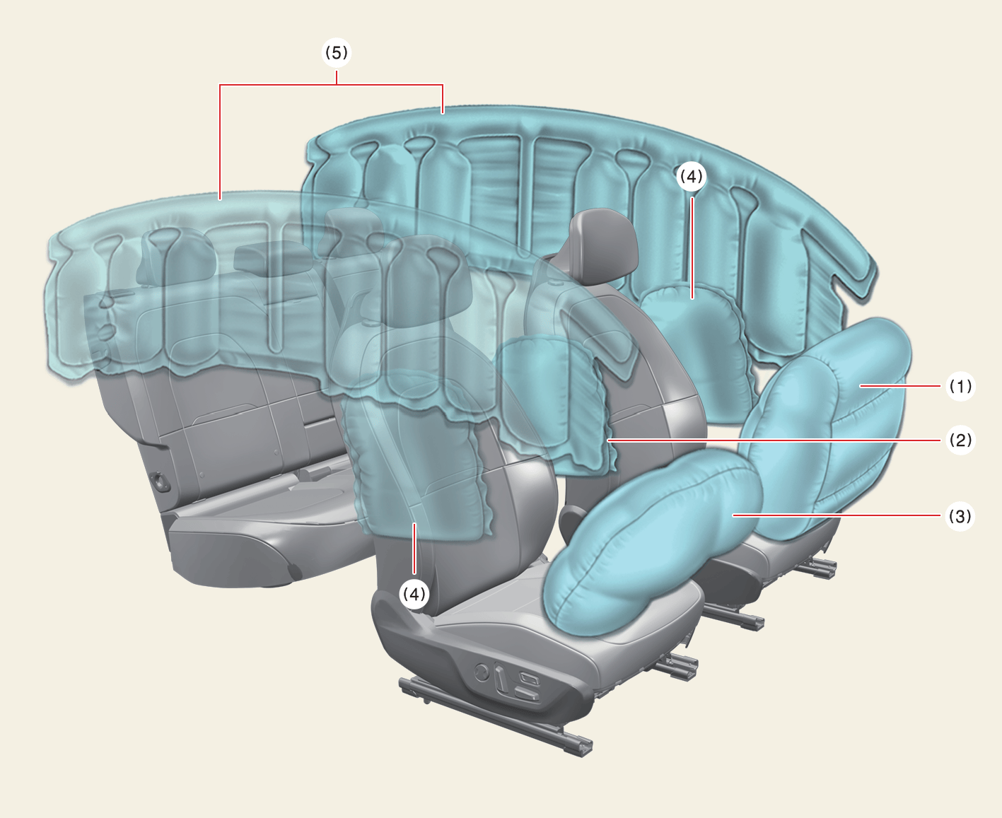The actual airbags in the vehicle may differ from the illustration.