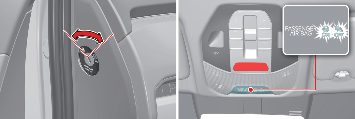 Turn the key to activate/deactivate passenger's front airbag.