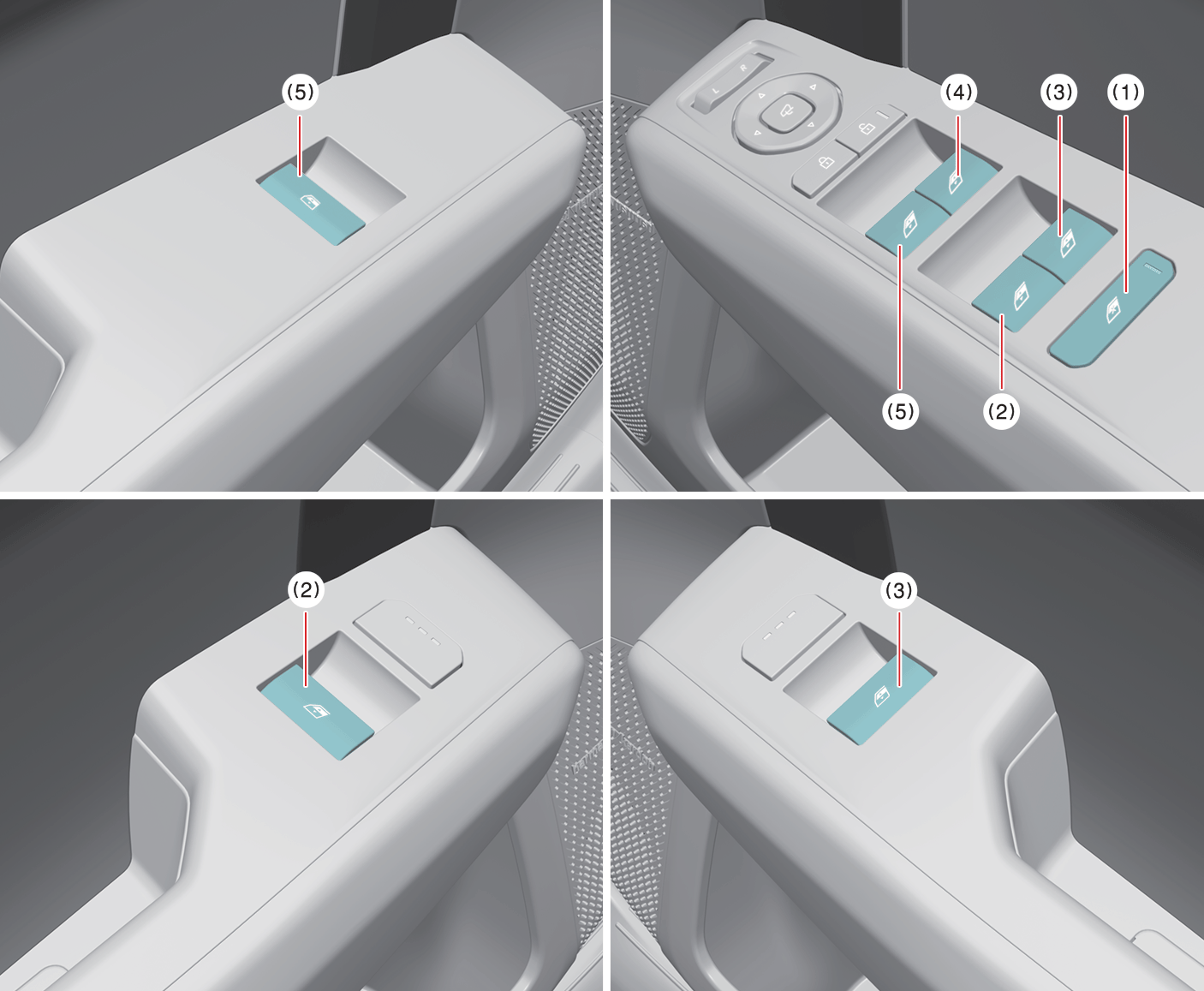 Rear door (right) power window switch