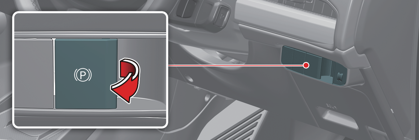 Depress the brake pedal and pull the EPB switch up to apply the parking brake.