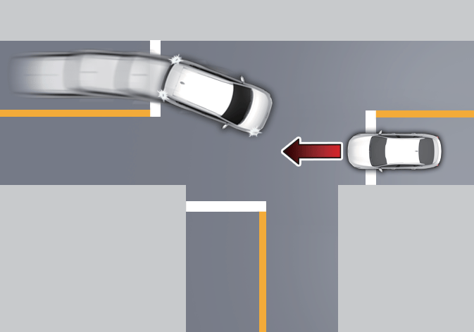Junction Crossing function will help avoid a collision with oncoming vehicles on the left or right side when crossing an intersection by applying emergency braking. |