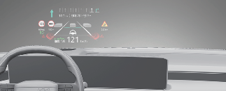 * 설명을 위한 샘플로 실제 차량에 적용된 헤드업 디스플레이 형상과 다를 수 있습니다.