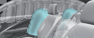 사이드 에어백은 앞좌석 및 뒷좌석 좌우측 시트 바깥쪽에 내장되어 있습니다.