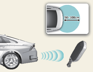 트렁크 후방 약 50~100 cm 이내에 스마트 키가 감지되면 웰컴 경보가 작동하면서 스마트 트렁크 기능이 작동됩니다.