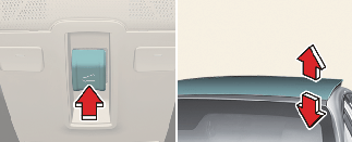 선루프 스위치를 위쪽으로 누르면 선루프 글라스가 자동으로 틸트 상태로 열립니다. 단, 파워 선블라인드가 닫혀 있으면 파워 선블라인드가 먼저 자동으로 열립니다.