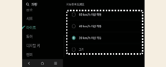 인포테인먼트 시스템의 설정 메뉴에서 선택한 속도 조건에 따라 지능형 헤드램프가 작동합니다. 지능형 헤드램프의 초기 설정은 '40 km/h 이상 작동'으로 되어있습니다.