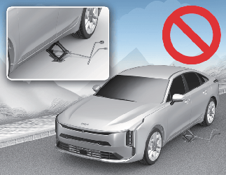 • 4륜 구동 차량을 잭으로 들어 올린 상태에서 엔진 시동이 걸려 타이어가 회전하지 않게 하십시오. 접지된 타이어가 회전하면 잭에서 차량이 튕겨져 나갈 수 있습니다.