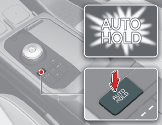 「AUTO HOLD」표시등은 초록색에서 흰색으로 바뀌고, 자동 정차 기능은 작동 대기 상태가 됩니다.