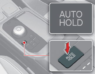 브레이크 페달을 밟고「AUTO HOLD」버튼을 눌러 자동 정차 기능을 해제할 수 있습니다.