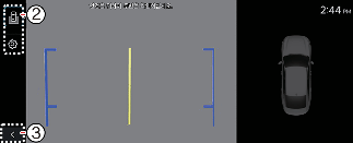 」(1)을 눌러 주행 중 후방 영상 뷰 기능을 켜거나 끌 수 있습니다.
