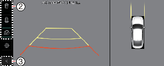 (인포테인먼트 시스템에서 설정 → 차량 → 운전자 보조 → 주차 안전 → 카메라 설정 → 표시 정보 → 후방 주차 가이드라인이 설정된 경우)