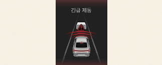 긴급 제동 중 가속 페달을 과하게 밟거나 스티어링 휠을 급격하게 조작하면 제동 제어가 해제됩니다.