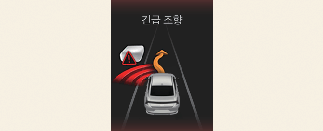 위험 상황이 사라졌다고 판단되면 긴급 조향이 종료됩니다. 필요에 따라 스티어링 휠을 조작하십시오.