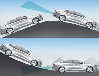오르막길이나 내리막길에서는 옆 차로에 있는 차량을 인식하지 못해 후측방 충돌방지 보조가 정상적으로 작동하지 않을 수 있습니다.
