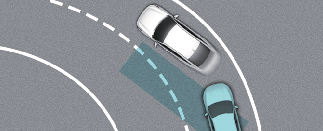 커브 길에서는 옆 차로에 있는 차량을 인식하지 못해 후측방 충돌방지 보조가 정상적으로 작동하지 않을 수 있습니다.
