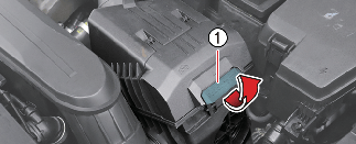 에어클리너 커버 측 레버(1)를 위로 당겨 잠금 상태를 해제하십시오.