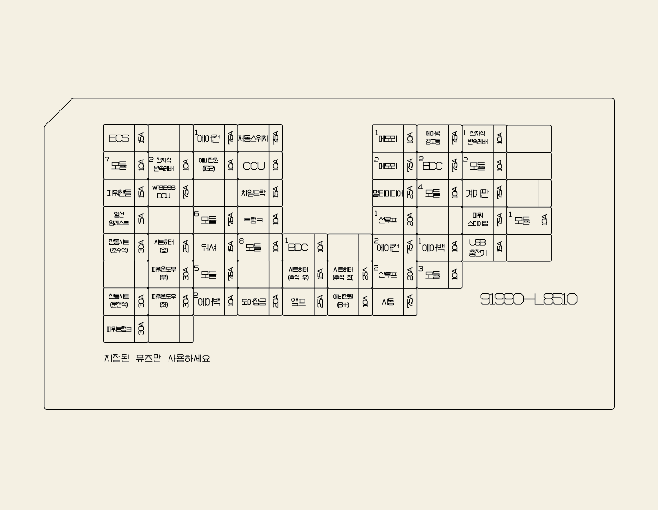 * 엔진룸 퓨즈 박스 내 이름 없는 공란 퓨즈는 예비 퓨즈가 아니므로 임의로 빼지 마십시오. 임의로 뺄 경우 해당 시스템이 작동하지 않을 수 있습니다.