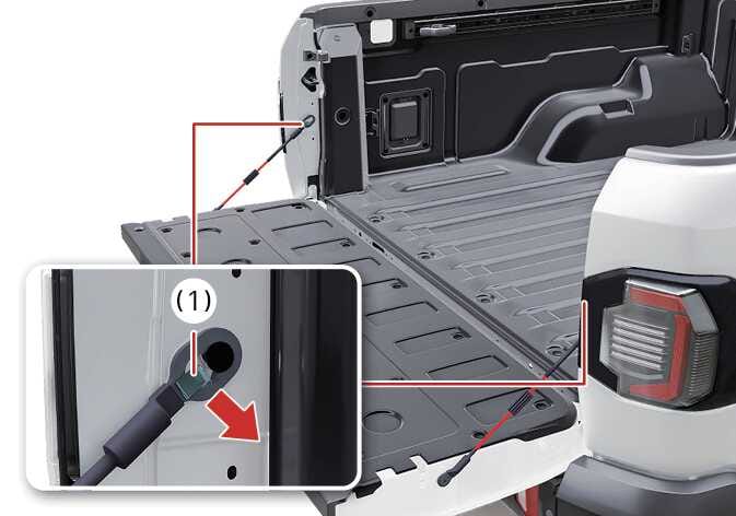 테일게이트를 약 45도의 각도로 열고 오른쪽 힌지를 빼내십시오.