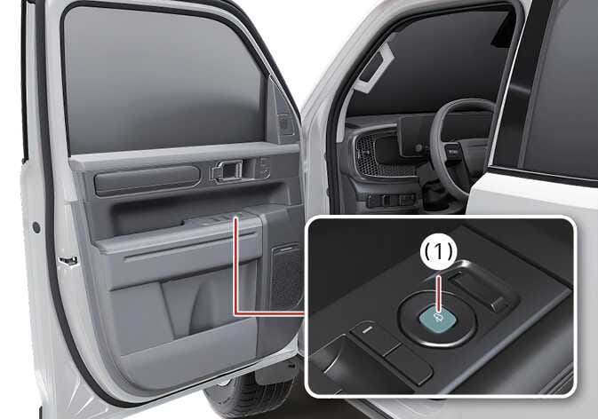 스마트 키 차량의 경우 앞좌석 실외 도어 손잡이에 있는 잠금/잠금 해제 버튼으로 도어 잠금 또는 잠금 해제 시 미러가 자동으로 접히거나 펼쳐집니다.