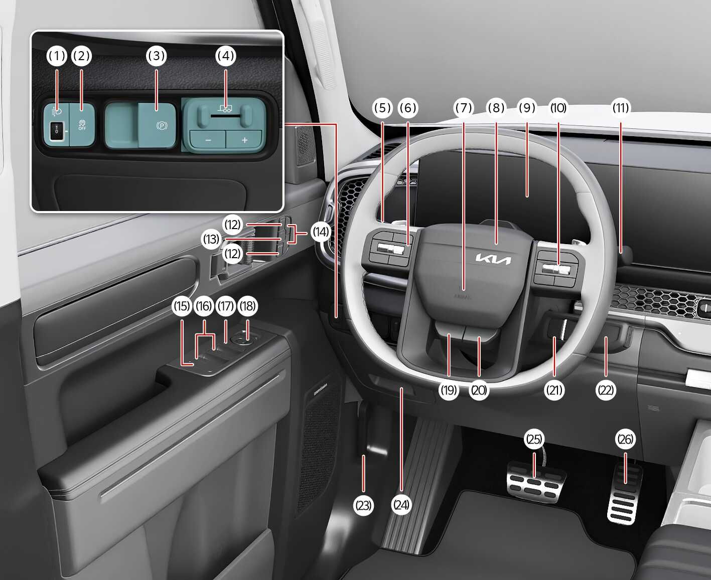 실제 차량과 다를 수 있습니다. (스위치의 형상 및 배열은 사양 적용에 따라 달라질 수 있습니다.)