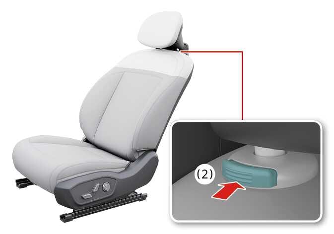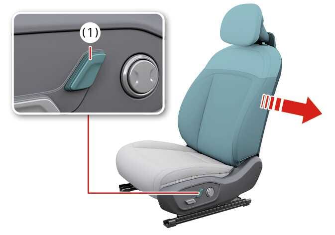등받이 각도 조절 스위치(1)로 좌석 등받이를 뒤로 젖히십시오.
