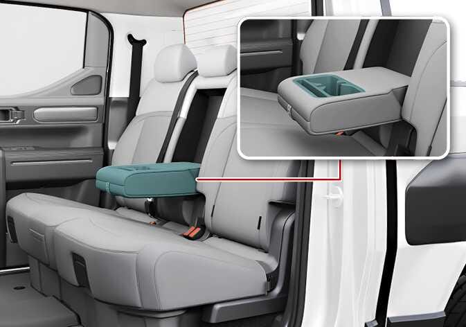 암레스트 상단을 잡아당겨 내리십시오. 암레스트에 컵 홀더가 있습니다. 사용 후에는 위로 올려 원위치하십시오.