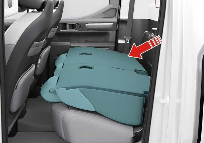 접힌 좌석 등받이에 앉지 마십시오. 접이식 뒷좌석 등받이의 목적은 다른 방법으로는 수용할 수 없는 더 긴 물건을 적재할 수 있도록 하는 것입니다.