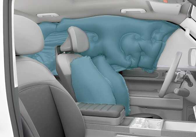 정면 에어백(운전석 및 동승석 에어백)은 차량 정면의 가운데를 기준으로 왼쪽에서 오른쪽까지의 일정 범위 안에 가해진 충격이 정면 충돌 센서에 전해지면, 충격의 정도에 따라 에어백 제어 모듈의 판단을 받아 작동됩니다.