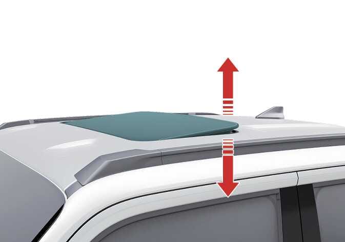 선루프 스위치를 위쪽으로 누르면 선루프 글라스가 틸트 상태로 열립니다.