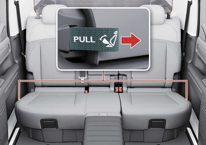 시트 바깥쪽에 위치한 스트랩을 당겨 시트 쿠션을 위로 올리십시오. 시트 하단에 있는 보관함을 사용할 수 있습니다.