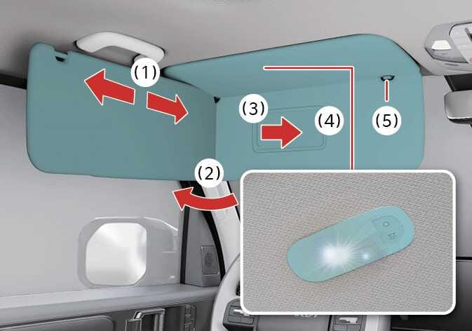선바이저 램프를 사용한 후에는 반드시 끈 후 선바이저를 원위치하십시오. 그러지 않을 경우 계속 램프가 켜져 있어 배터리가 방전되거나 선바이저가 손상될 수 있습니다.