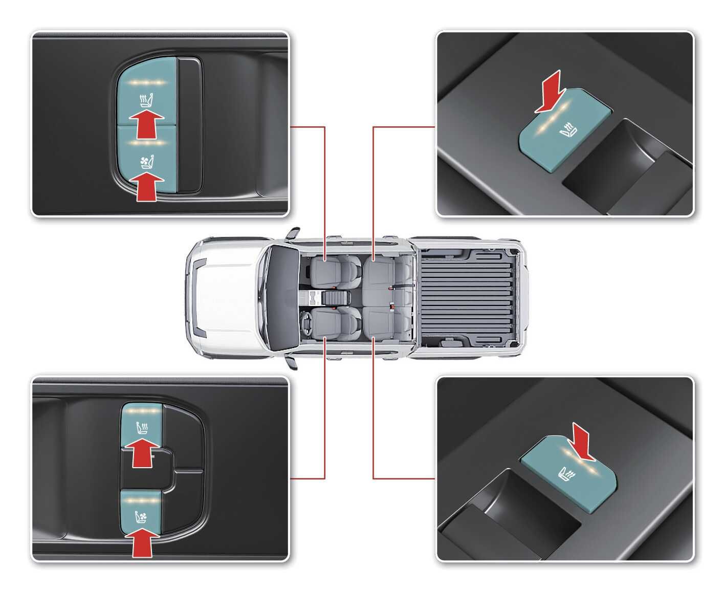 인포테인먼트 시스템의 공조 설정 메뉴를 통해 앞좌석에서도 뒷좌석 좌우 열선 시트를 작동할 수 있습니다.