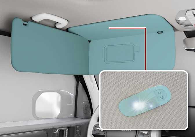 거울을 사용하신 후에는 반드시 커버를 원위치하십시오. 램프가 켜져 있을 경우, 배터리 방전과 선바이저 손상을 초래할 수 있습니다.