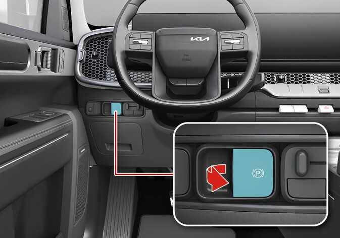 브레이크 페달을 밟은 상태에서 전자식 파킹 브레이크(EPB) 스위치를 당기십시오. 주차 브레이크가 체결되고 클러스터의 브레이크 경고등이 켜집니다.